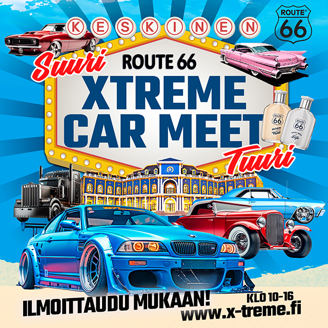 Tervetuloa ROUTE 66 X-TREME CAR MEET -tapahtumaan Keskisen Kyläkaupalle!